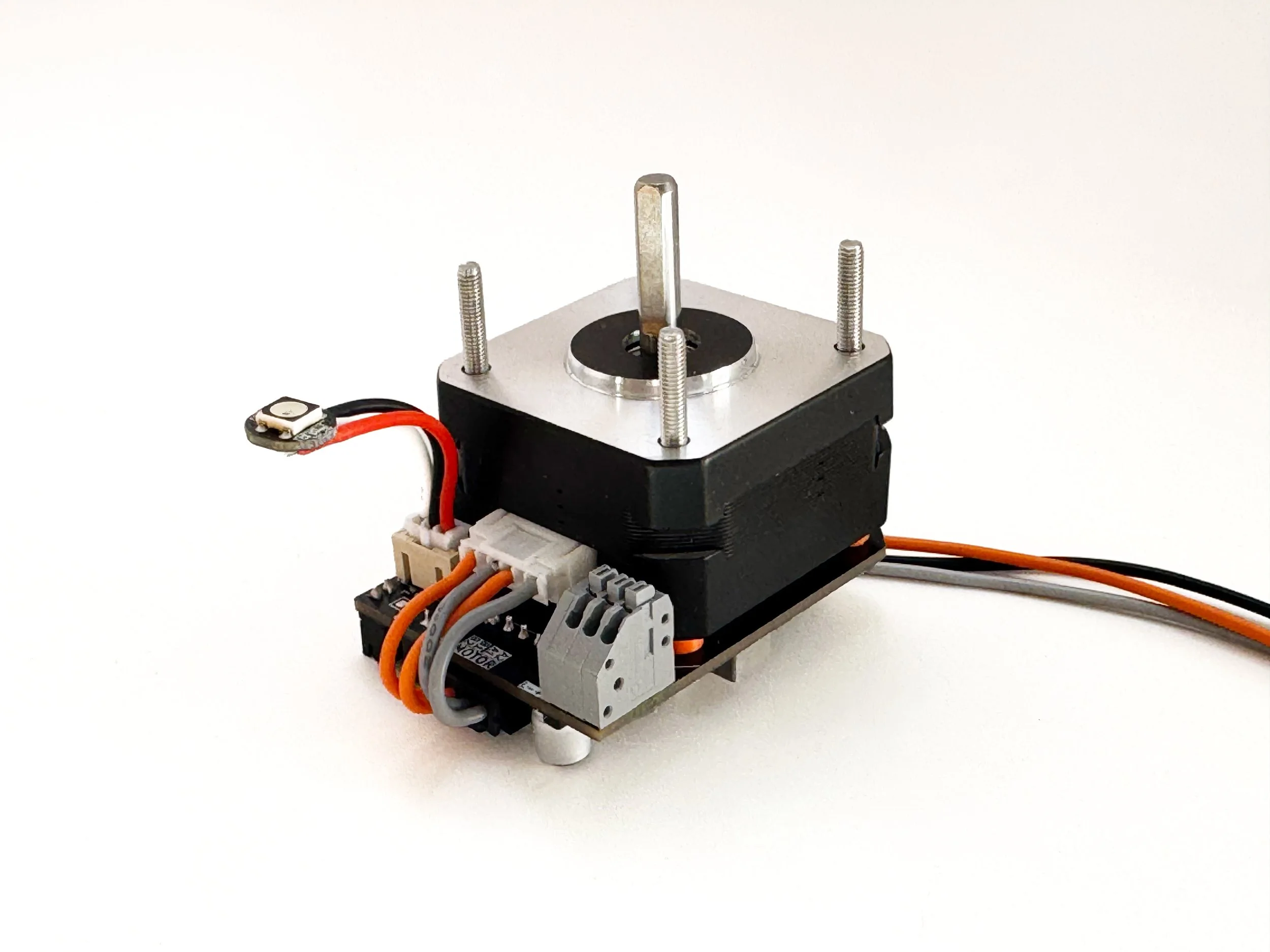 Closed-Loop PID: TMC2209 driver + AS5600 magnetic encoder at 800 kHz I2C. PID algorithm established and fine-tuned with Claude Code. Velocity feedforward from the controller compensates for noisy derivative.